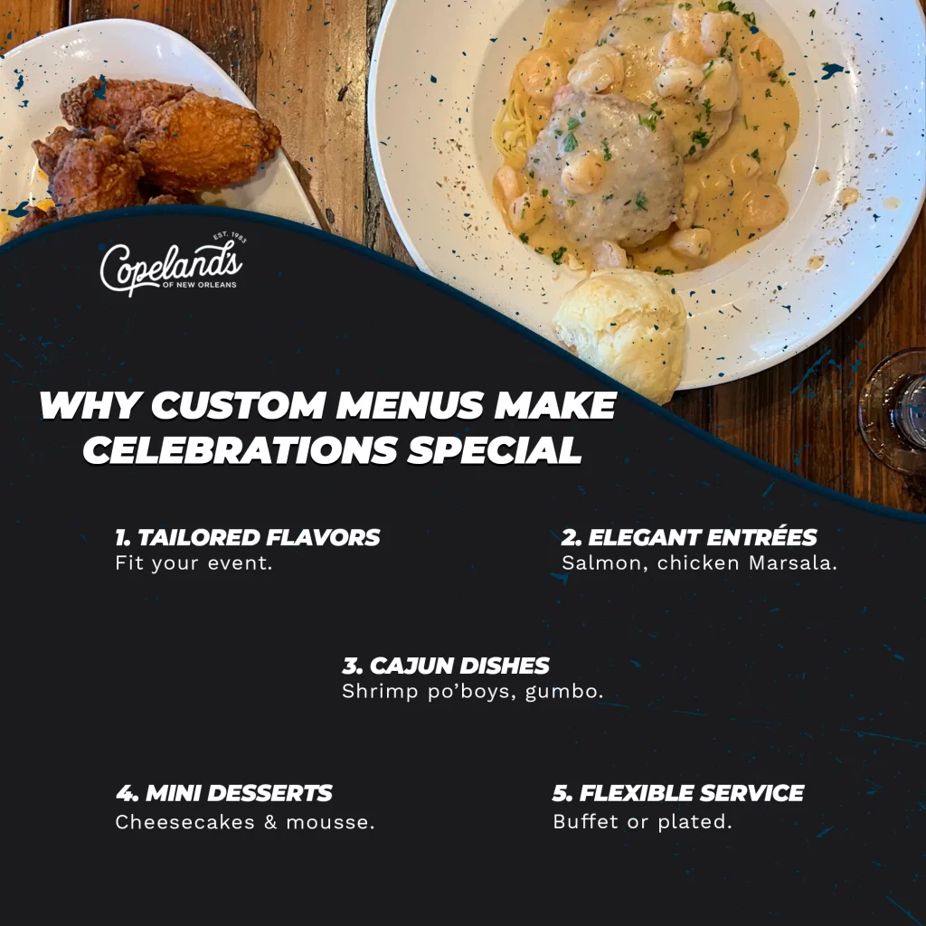 - Tailored menus enhance celebrations by reflecting the event’s mood and guests’ preferences, ensuring a memorable dining experience at Copeland’s.