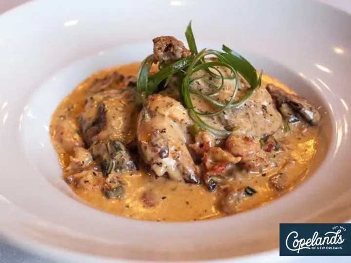 Blackened chicken breast, madeira mushroom dressing, crawfish tasso cream sauce