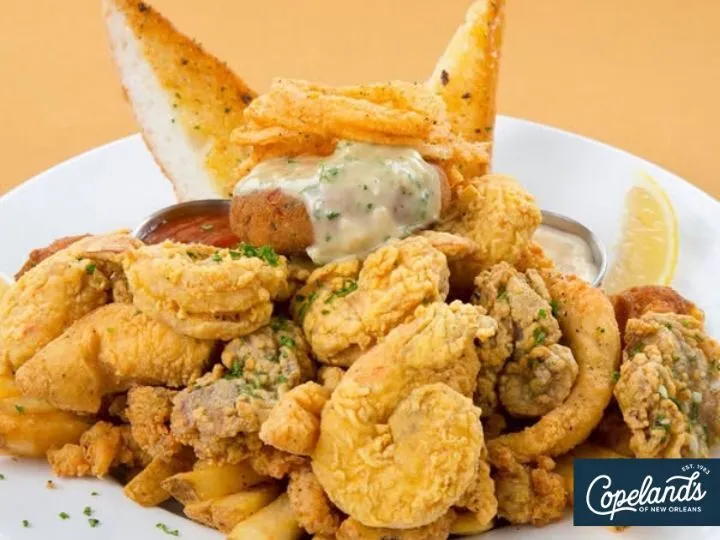 Shrimp, crawfish tails, oysters (seasonal), crabcake, crispy catfish, onion strings, french fries, corn fritters.