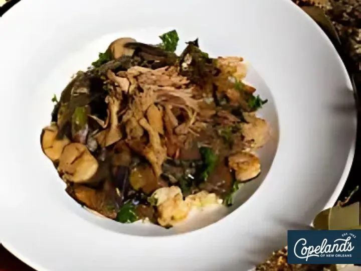 Roasted and flash fried strips of duck, sauteed gulf shrimp, burgundy mushroom sauce served over rice