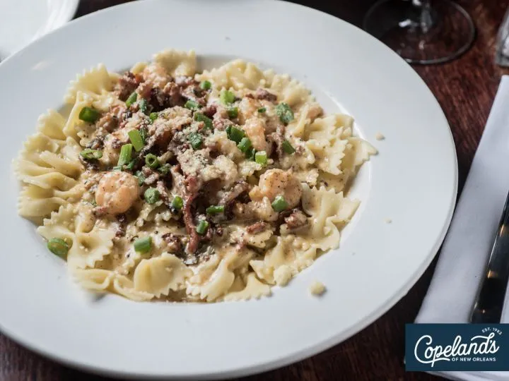 Gulf shrimp pan sautéed, tasso, parmesan cheese, cream sauce, bow tie pasta